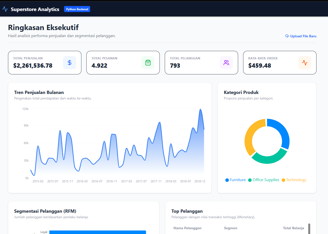 Platform analitik end-to-end yang memanfaatkan machine learning untuk mengungkap pola belanja, memprediksi risiko churn, dan memberikan rekomendasi produk cerdas bagi optimalisasi bisnis ritel